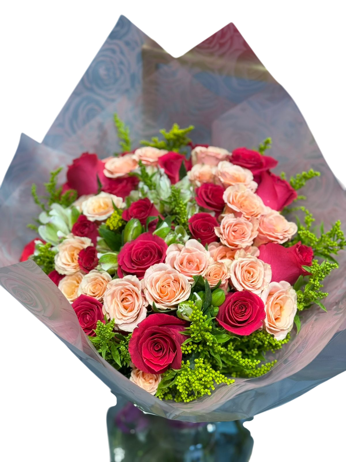 Delicado ramo de rosas en tonos pasteles, ideal para transmitir dulzura, elegancia y cariño en cualquier ocasión especial.