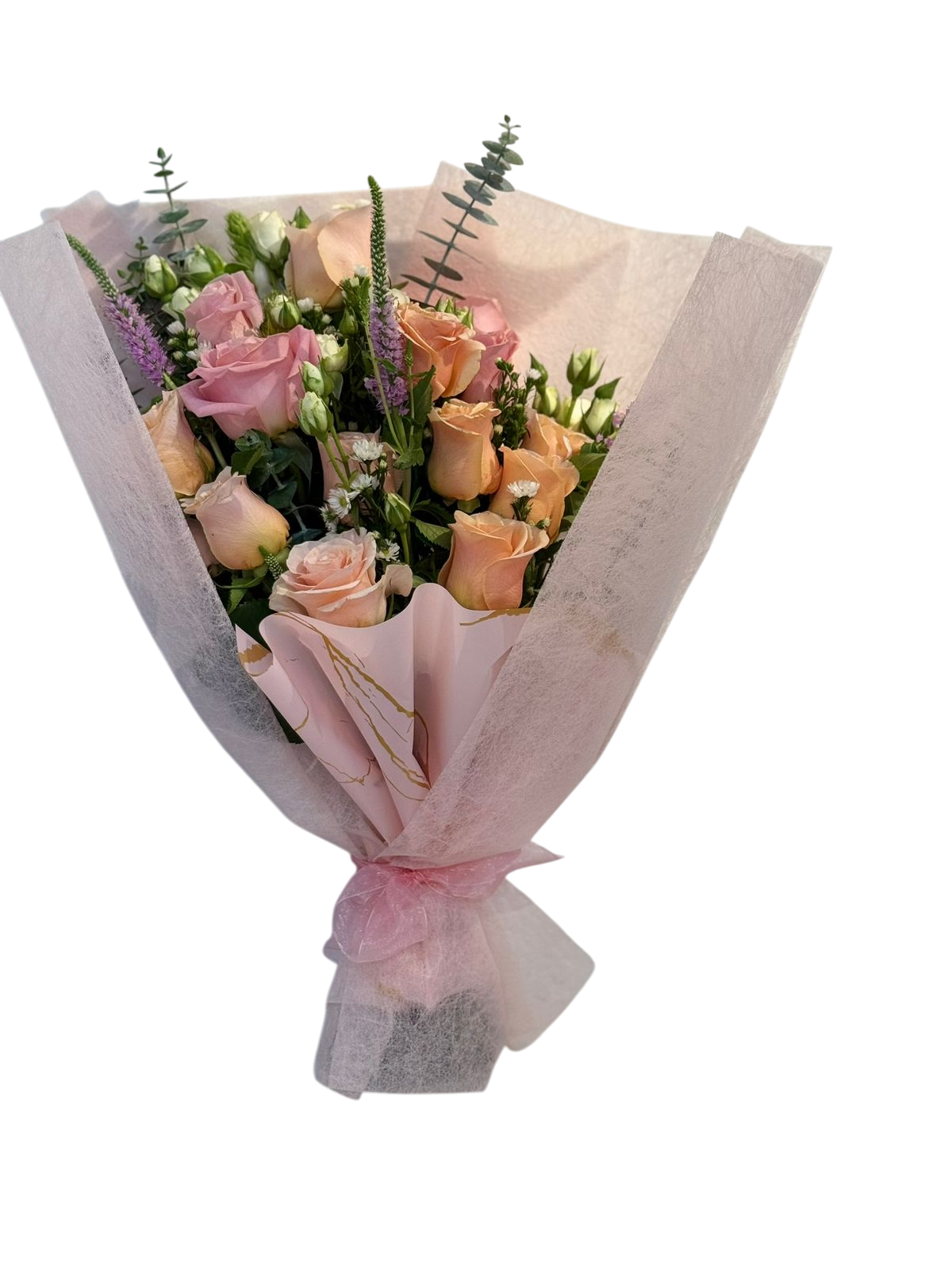 Sofisticado ramo de rosas en tonos variados, ideal para transmitir elegancia, cariño y buenos deseos en cualquier ocasión especial.